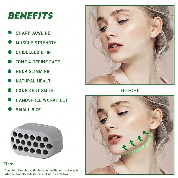 Our exerciser engages and strengthens the masseter muscles, sculpting your jawline and toning your neck for a sharper, more defined facial profile that radiates confidence.